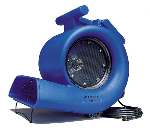 For speed drying of wet carpets, pads, floors and walls. Lightweight, plastic housing and stackable for convenient storage. The integrated carry handle allows for easy transport. Flat outlet allows blower to be directed under carpets. Squirrel Cage Fan. CFM: low speed 953, medium speed 1132, high speed 1438. Features Dimension: 21"h x 15"w x 21"d Weight: 33 lbs 1/2 hp Power Supply: 115V/60hz/1ph 2500 CFM 6.0A
